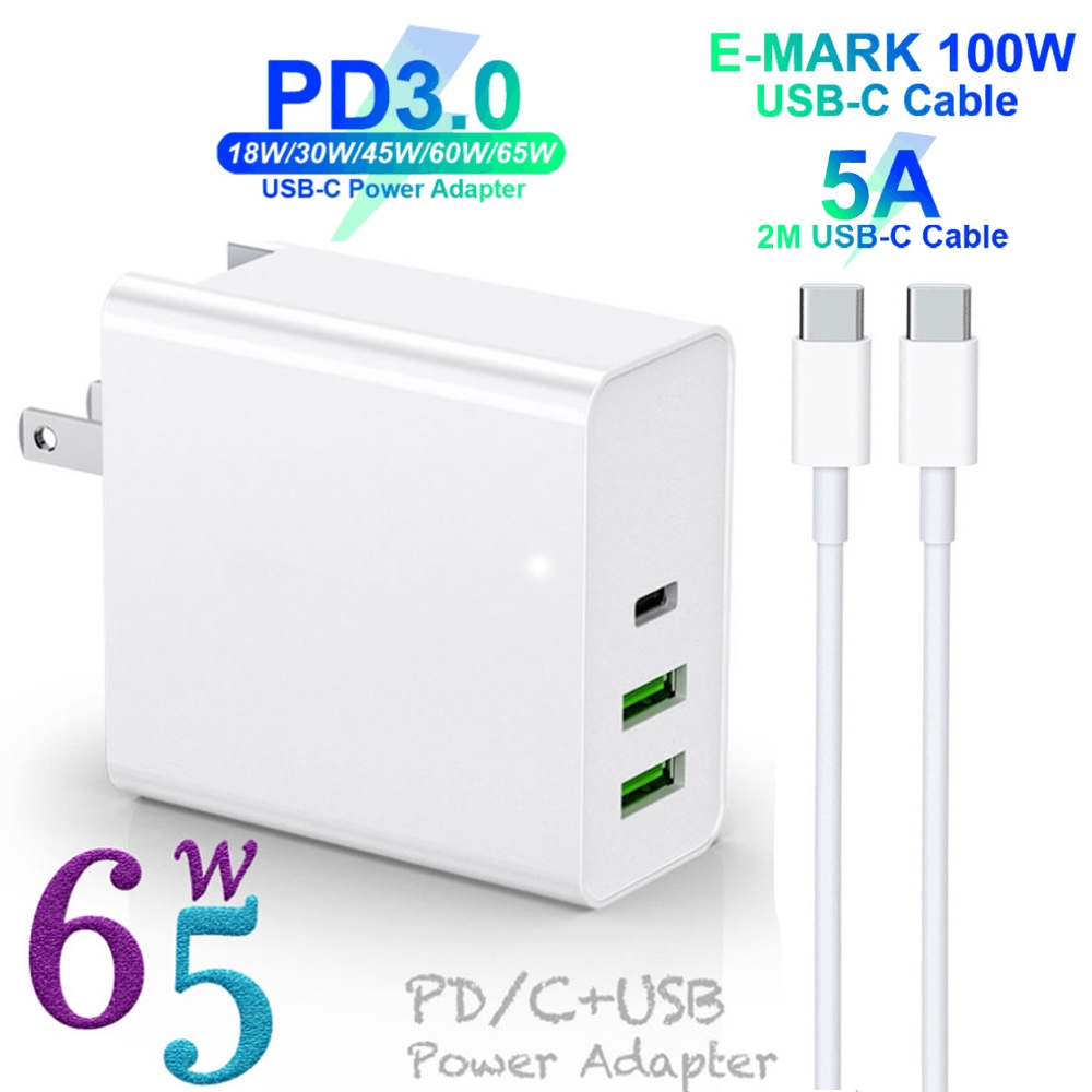65W USB Type C Wall Charger (USB C Power Adapter/USB C Laptop Charger/USB-C PD Charger) with Power Delivery & Dual USB Port for MacBook Pro, Laptops with USB C Charging, Smart Phones |