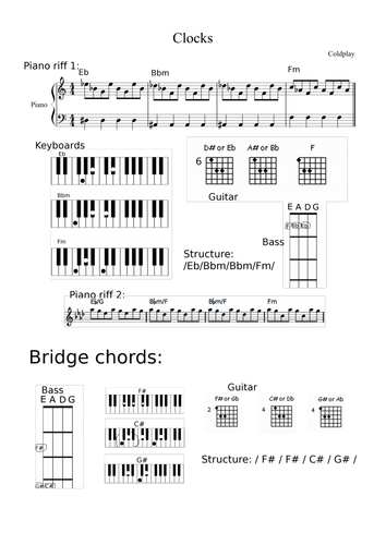 Clocks Coldplay Lead Sheet For Bass Guitar And Piano Teaching Resources