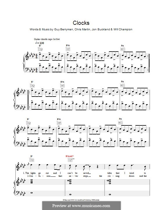 Clocks Quot Sheet Music By Coldplay For Piano Vocal Chords Sheet Music Now