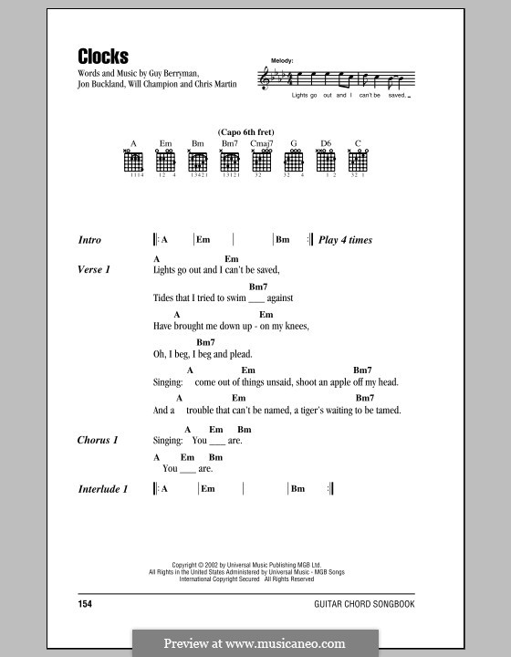 Chord Clocks Coldplay Tab Song Lyric Sheet Guitar Ukulele Chords Vip